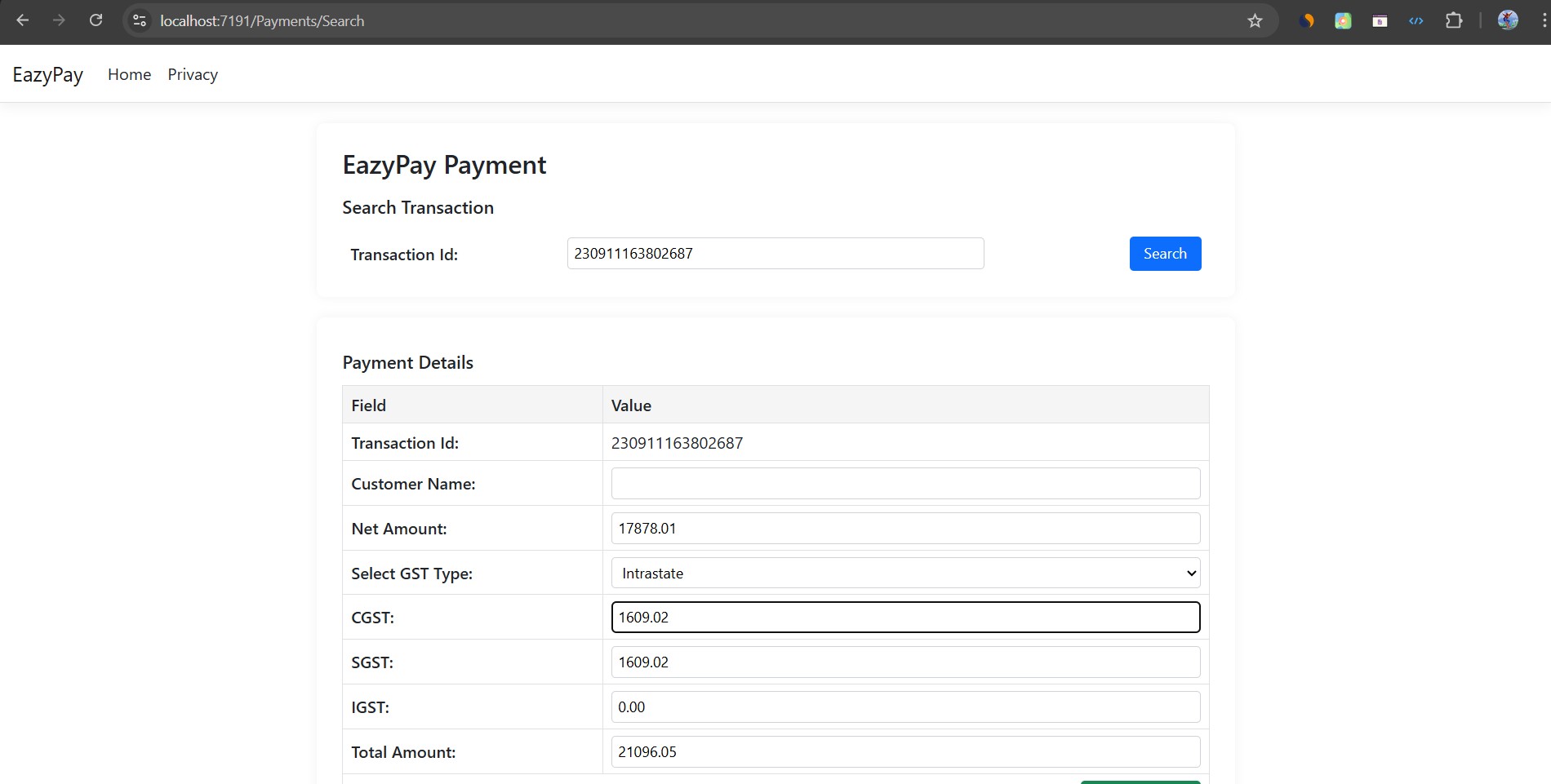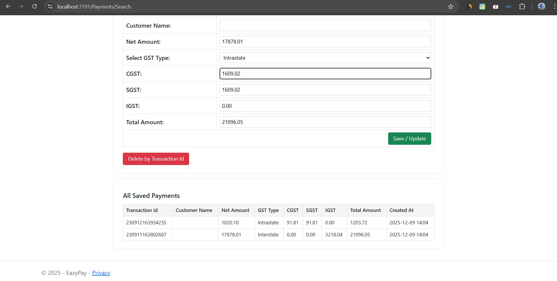 This task enhanced my expertise in .NET application development, banking API integration, GST-compliant financial calculations, and SQL Server database optimization.